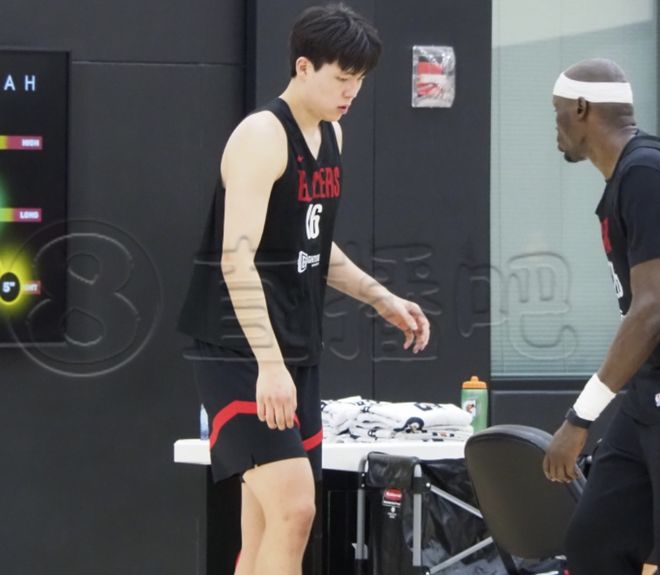 开拓者队内训练里,杨瀚森在跑战术,先是跑到弧顶,接到助教传球之后出手三分,杨瀚森2次出手弧顶三分全部打铁。接下来又回到底角位置去投三分,底角位置杨瀚森第一轮出手2次也只命中了1球,跟他一组的里斯投得那可是非常准的。